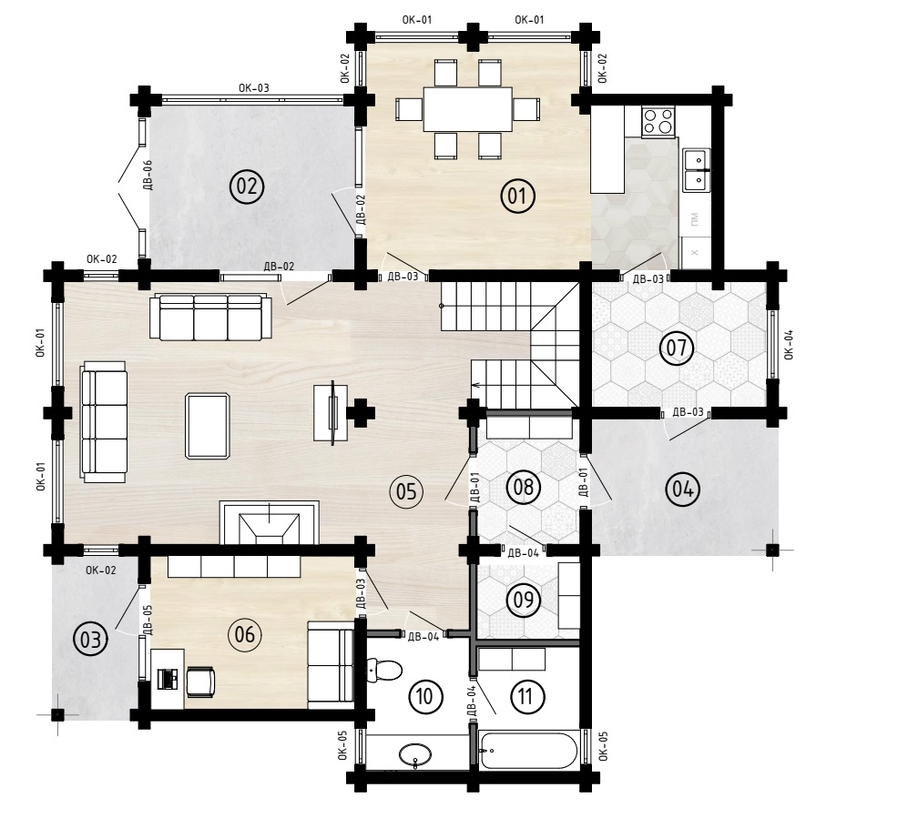 Огромный и очень презентабельный двухэтажный дом из профилированного бруса, общей площадью 200 кв. м. Впечатляющее разнообразие комнат, а также наличие зимней и летней веранд обеспечат комфортное проживание даже очень большой семьи. Этот дом из бруса приятно порадует как продуманностью внутренней планировки, так и элегантностью внешних форм.